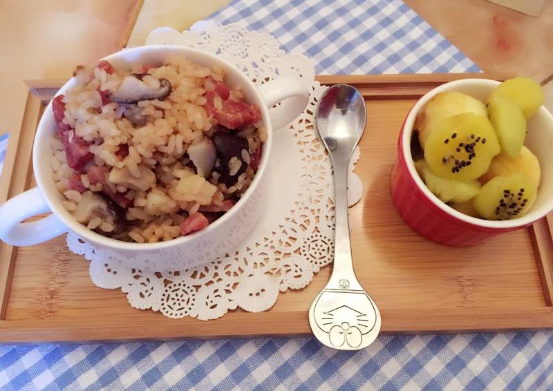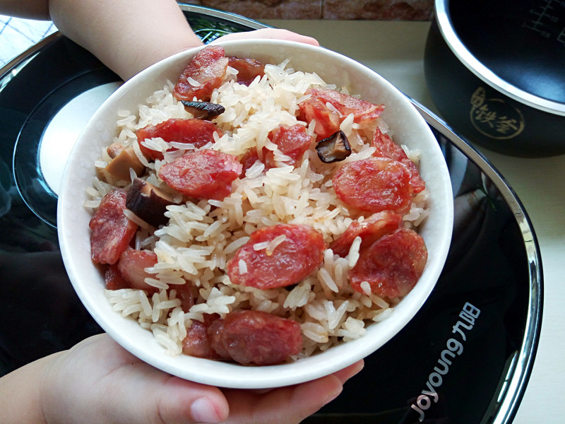 8:一碗浓香的香菇腊肠焖饭就可以吃。
