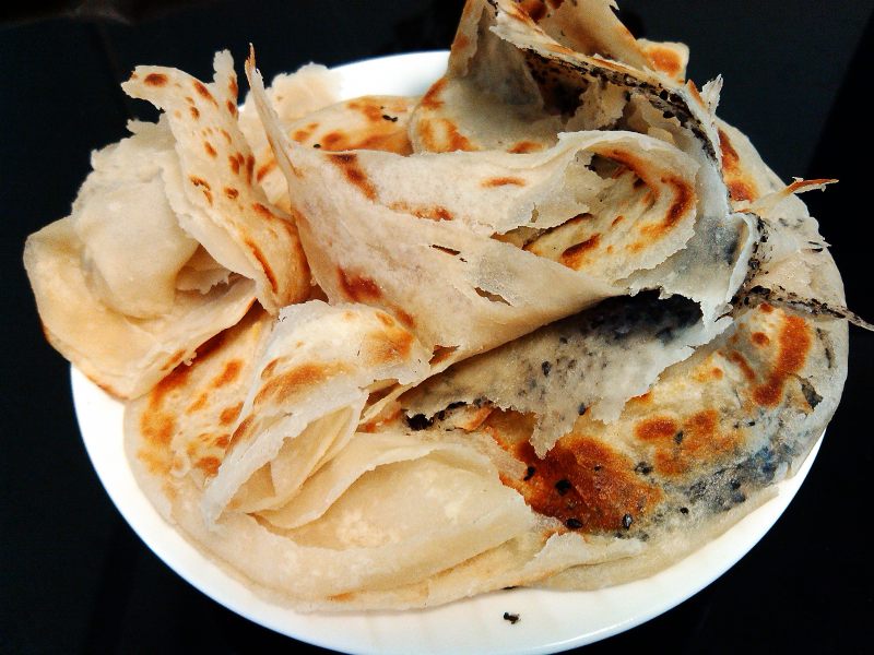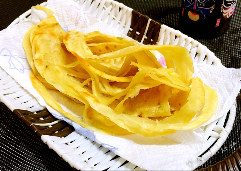 17:在烙好最后一面时用锅铲轻轻拿起摔打。饼就很自然的分开成手撕状。看看是不是很诱人呀,快快动起手来吧!