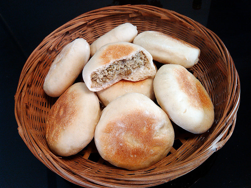 8:成品装盘,柔软膨松,切开1个由于没有凉透,所以馅料切口不平整,凉透了切口就美观了)。