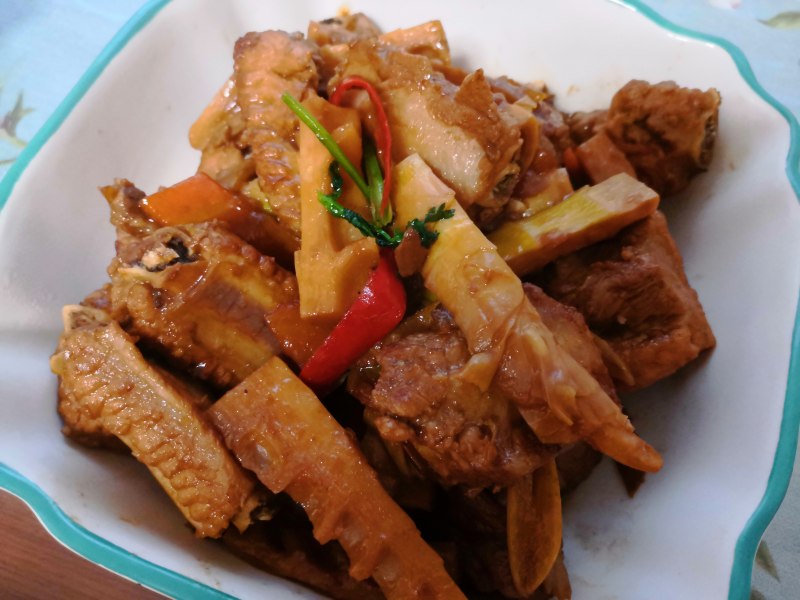 春笋烧鸡腿,一道将山野之鲜与家禽之嫩完美融合的时令佳肴。其秘诀在于把握春笋的脆嫩与鸡腿的滑润,通过先煎后炖的步骤,让鸡皮焦香、肉质吸饱笋的清甜与酱汁的醇厚。成菜色泽油亮,入口鲜香四溢,每一口都是春天最生动的滋味。