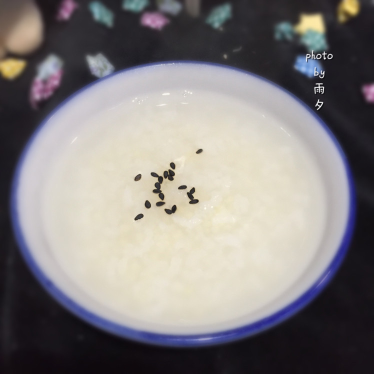 5:小火继续煮30分钟,待米粒煮烂时,即可关火出锅了。不放糖,味道却是甜丝丝的