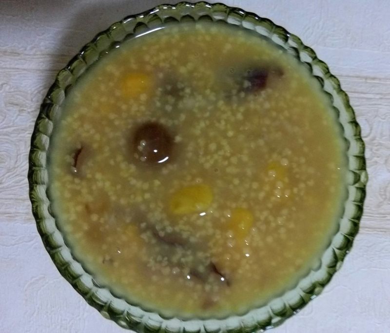 1:熬好的小米粥(小米、黑米、长豆角豆、花生)