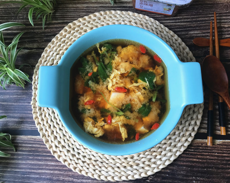 11:加了味噌的豆腐蛋花汤变得更加鲜美可口又好喝。