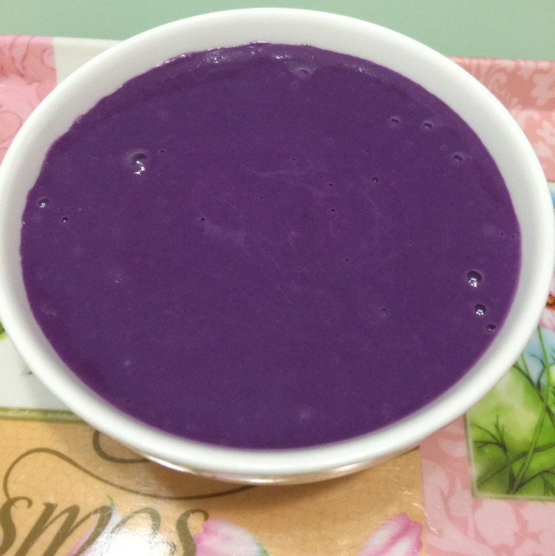 4:蒸熟的紫薯放搅拌机中,加入适量的牛奶和白糖,启动搅拌机打至薯泥完全顺滑即可