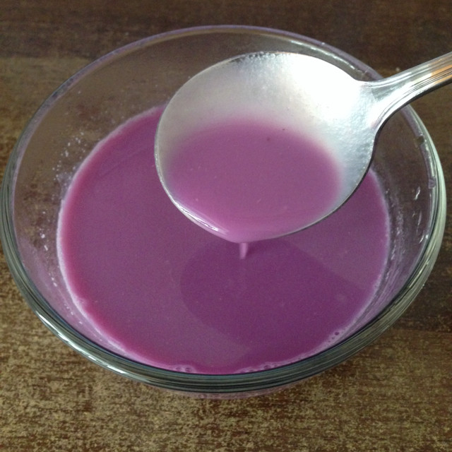 7:倒入柠檬汁,紫薯泥马上变色,搅拌均匀