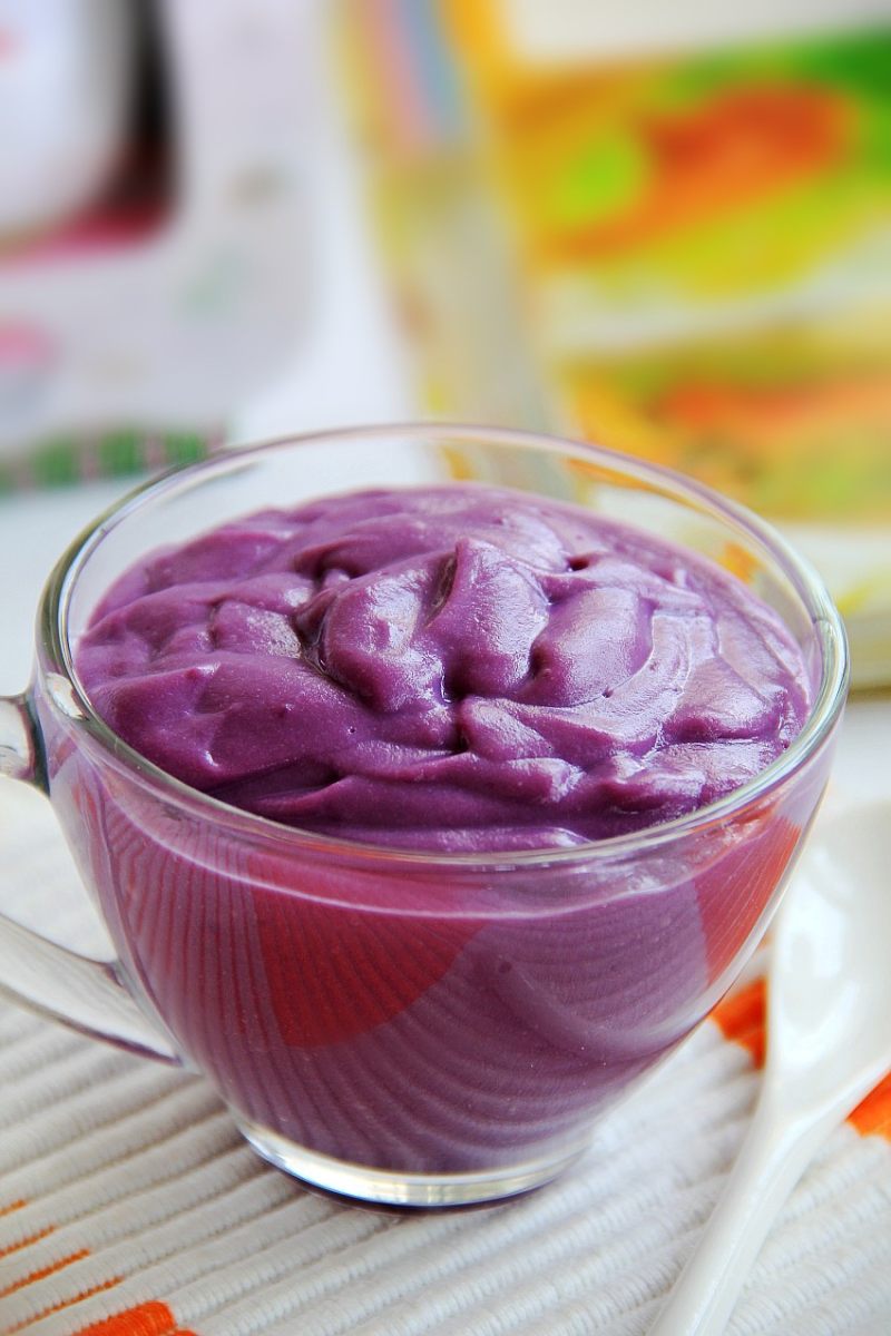 12:放入料理机,加入淡奶油打成细腻的紫薯泥