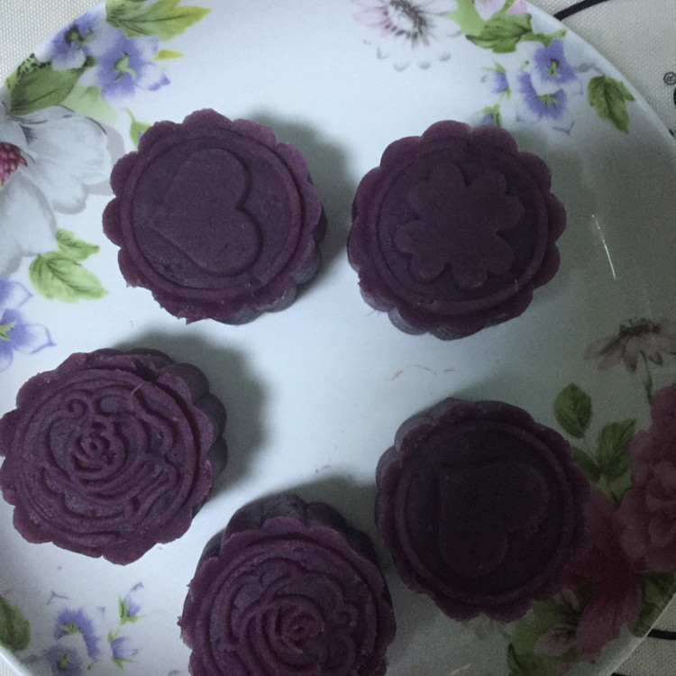 8:加热翻炒约1小时候后,果酱功能完成,按照紫薯泥湿度可以选择提早结束程序或增加时间,取30g左右紫薯泥,团成小球用月饼模压花,冷藏后食用口感更佳