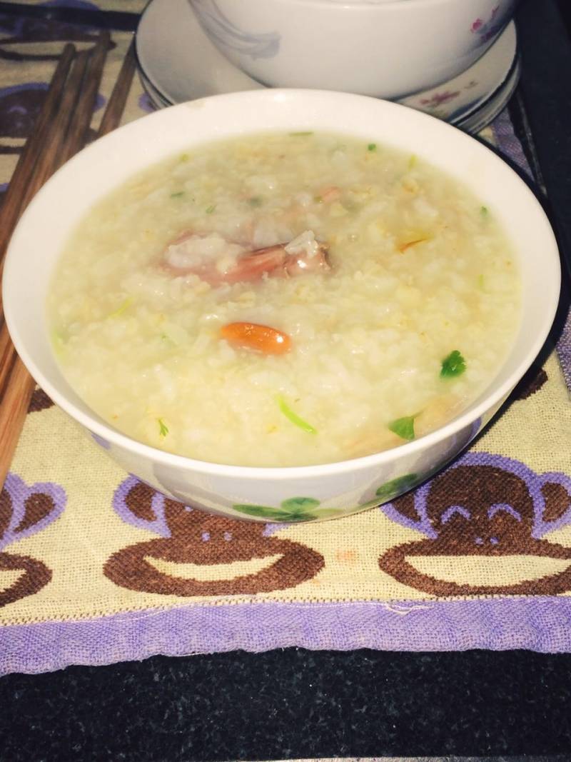 1:糯米与大米的比例为二比一。用手抓丈量的话,抓两下糯米,一下大米煮出来正好两碗粥