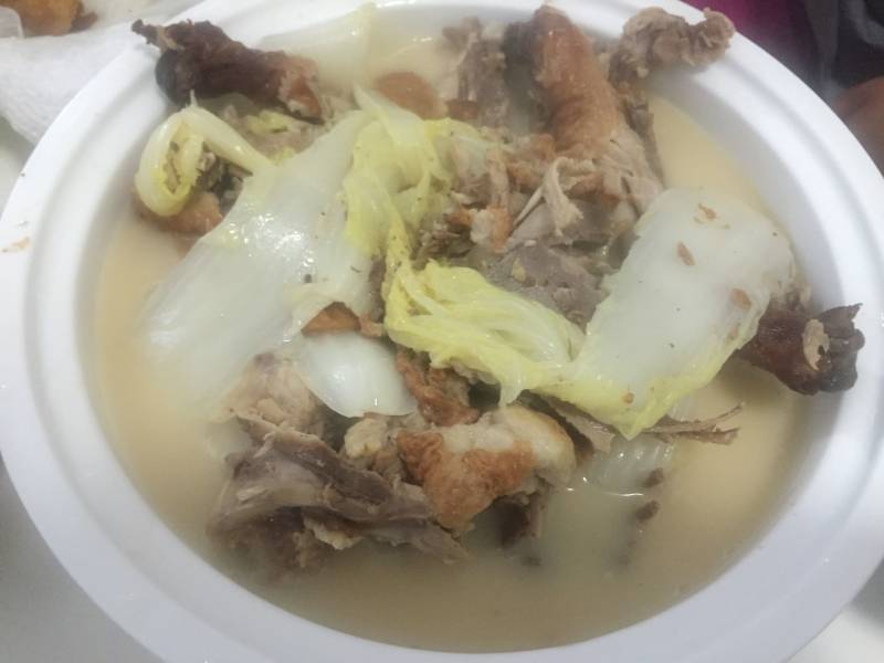 1:准备好鸭架一个,我这是饭馆吃烤鸭打包回来的鸭架。