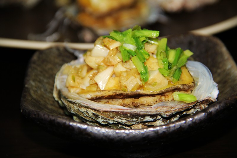 10:继续在小鲍鱼身上放一些炒过的葱姜蒜蓉