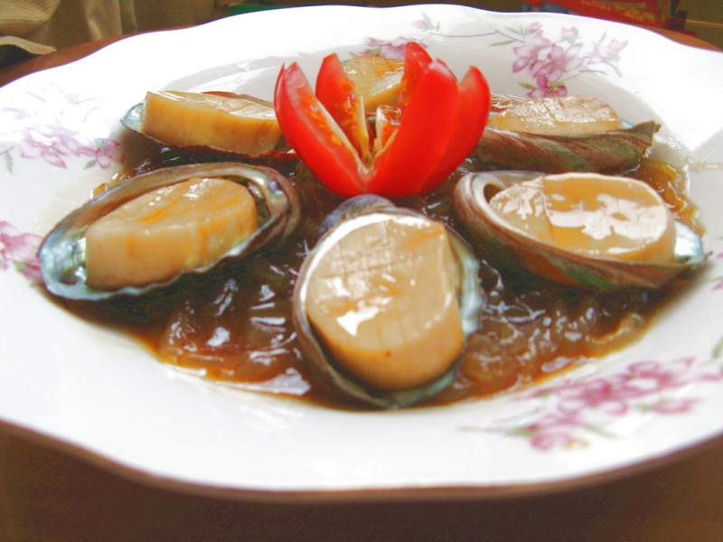 10:大功告成了!真的很美味啊!葱蒜飘香,去除了鲍鱼的腥味。鲍鱼肉鲜嫩可口。很美味哦~