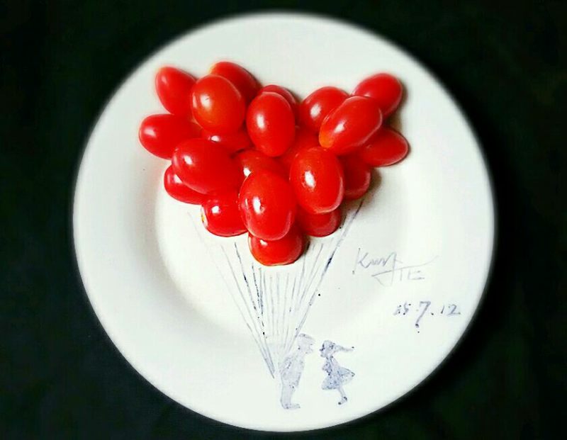 2:之后把所有的千禧柿子都对半切开,摆出心形!
