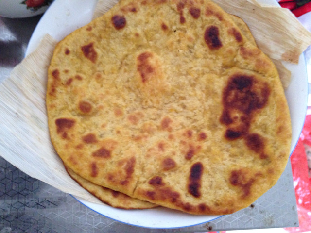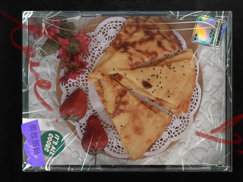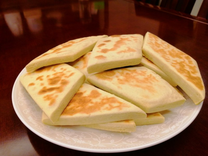 5:把面团擀成薄薄的饼,放在电饼铛上烙即可