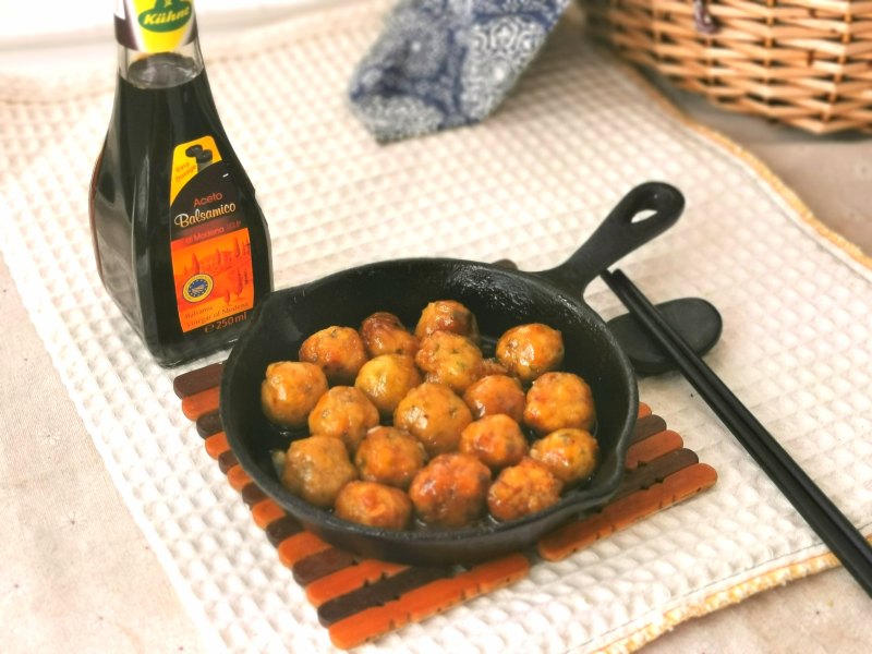 8:放入肉丸子拌炒均匀,香汁浓稠关火。