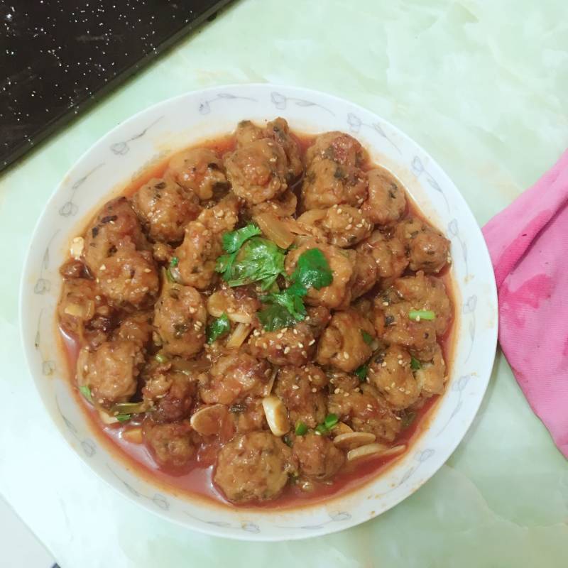 13:搅拌均匀让丸子都裹上汤汁。收汁装盘就可以了