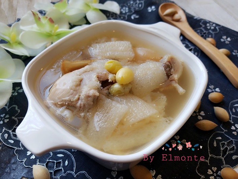 6:在鸡汤快好的前10分钟放入竹荪,鸡汤煲好后只需按加少许盐调味即可