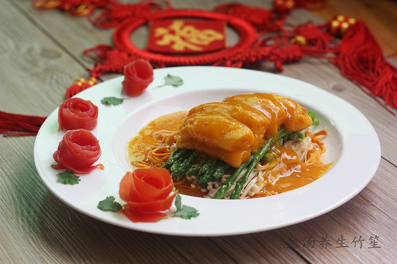 1、竹笙先用白醋再用盐保证食用的竹笙没有异味,保持竹笙爽脆的口感。2、金针菇焯水不要超过1分钟。3、芦笋可以用来做沙拉的,放在沸水不要超过2分钟。要保持芦笋的青绿在焯水时,沸水里放入油和盐。