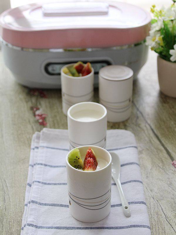 5:再给酸奶机加盖,通电,选“酸奶”功能,时间到了酸奶就成功了。冷藏后风味更佳。