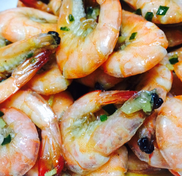 5:倒入基围虾翻炒至金黄,大概2分钟,再加少量盐盛出摆盘(盐不加也可,因为本身生抽、老抽都有盐,根据咸淡口味)。