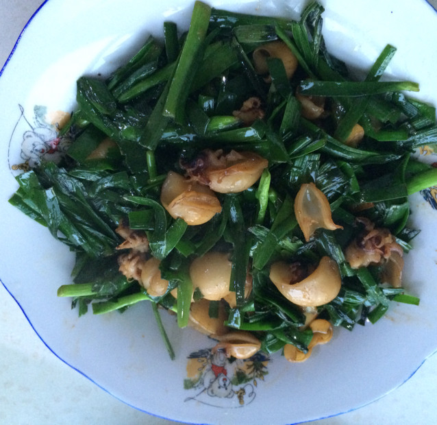 3:爆香葱姜蒜后加菜和墨鱼仔
