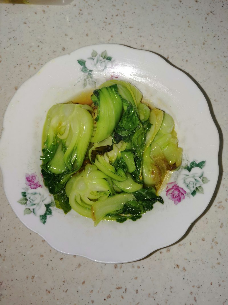 4:油菜炒软,加十三香,生抽,耗油,放一点点老抽,盐,鸡精。