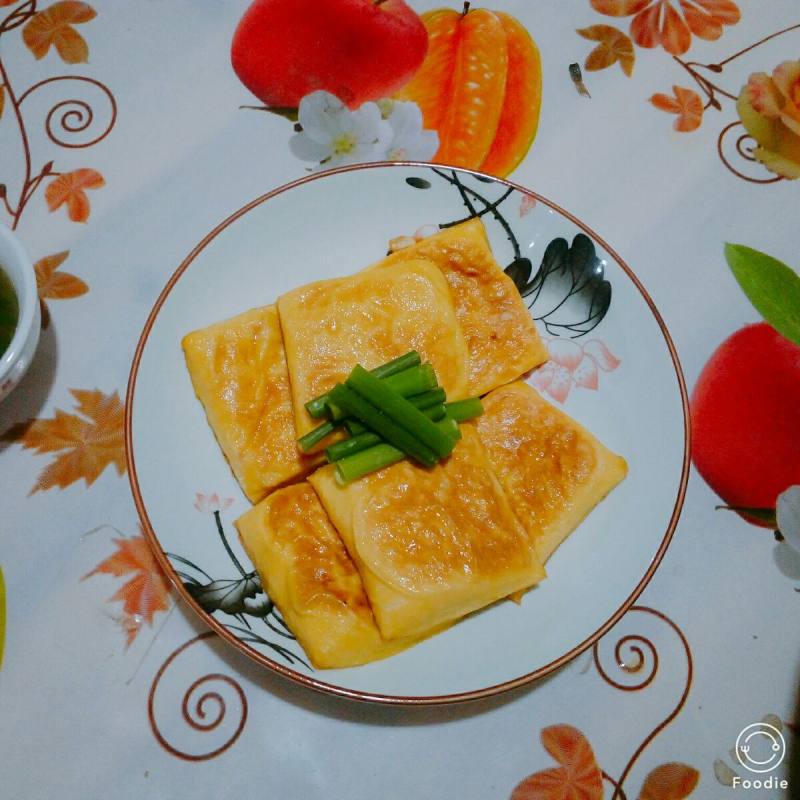 2:豆腐下平底锅煎两面酥,就可以了。