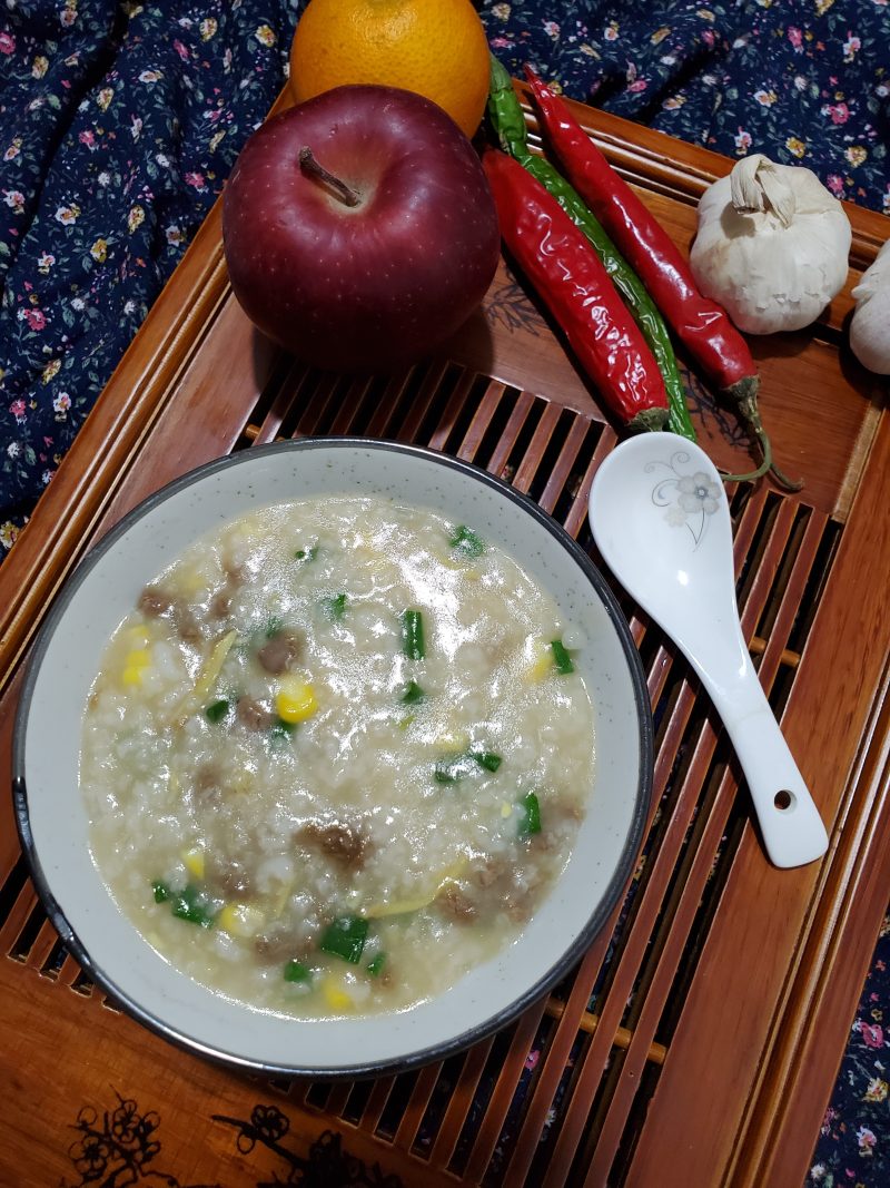 五常大米半杯;玉米粒1小碗;牛肉适量;