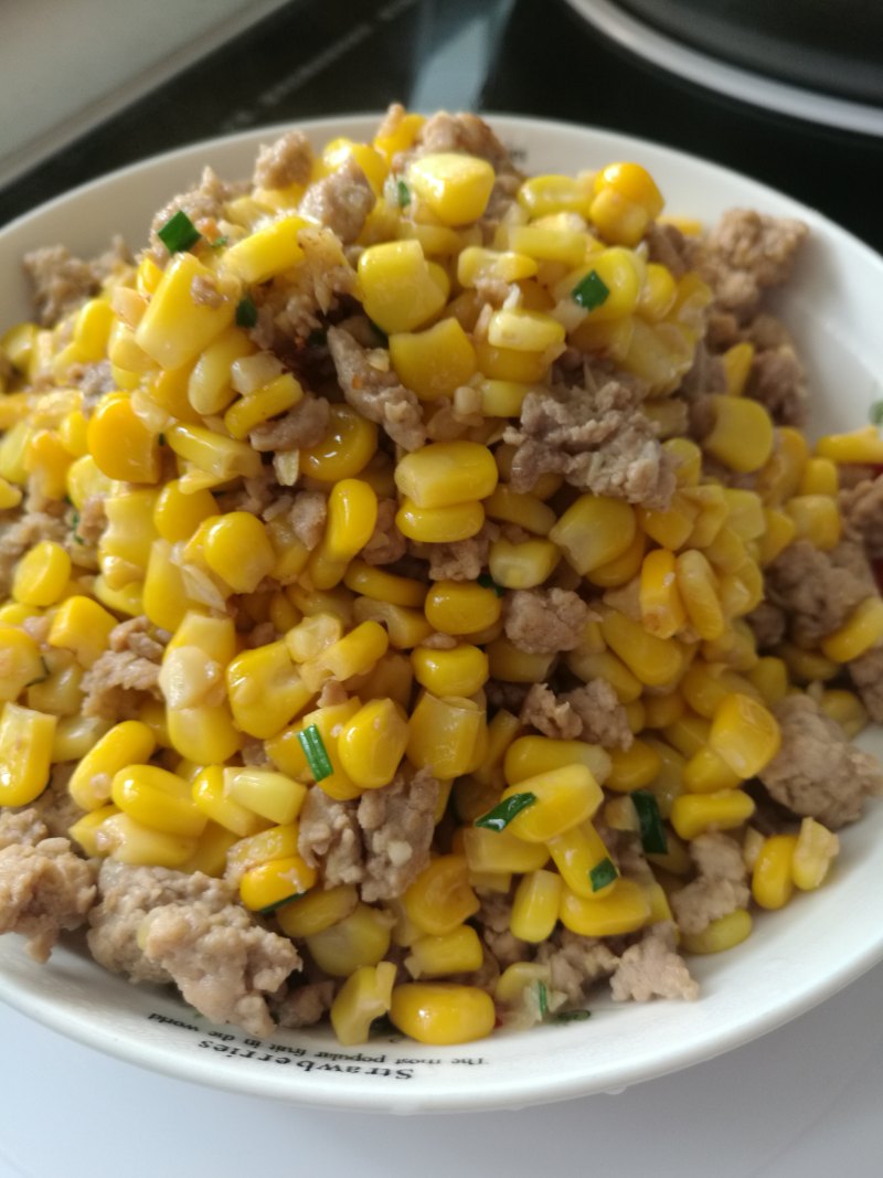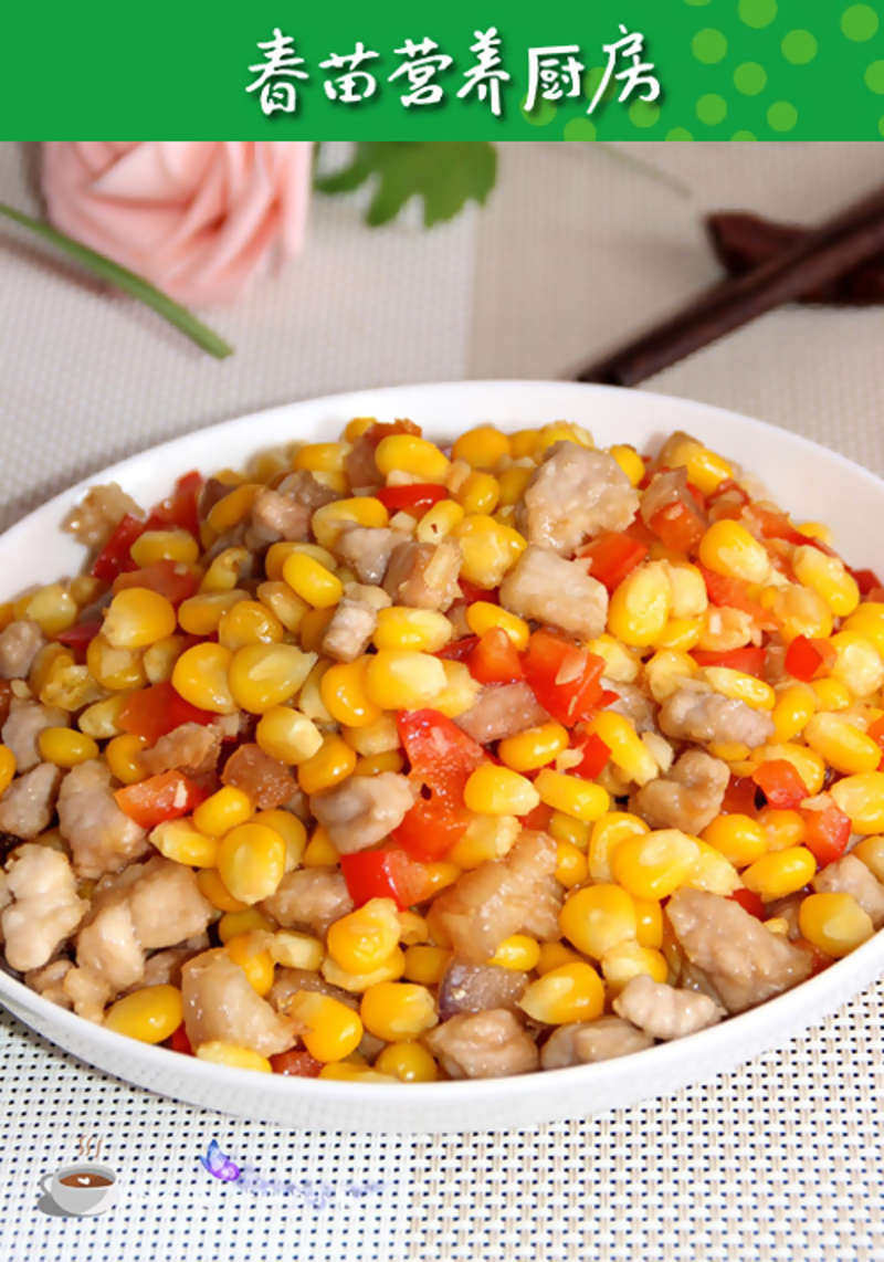 8:这样炒制的肉末玉米粒孩子特别喜欢。