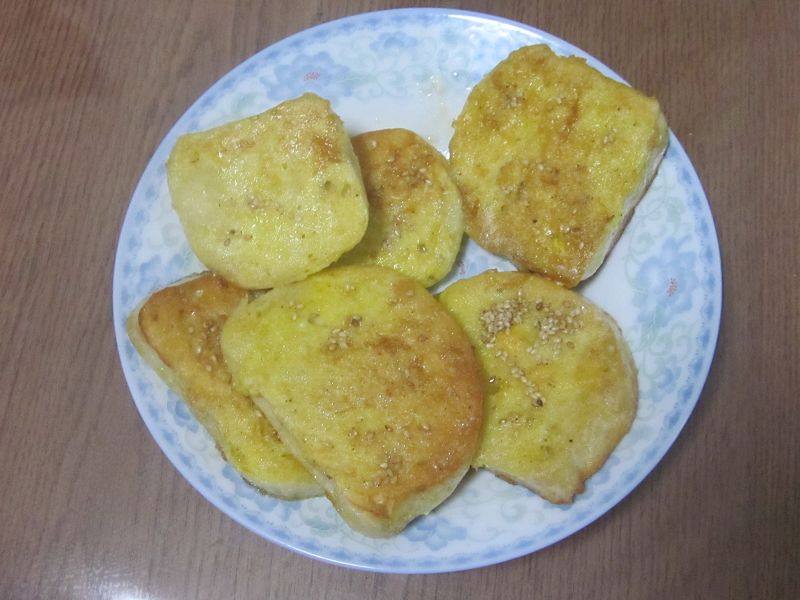 5:炒锅放入油,馒头片放入小火煎,煎到两面发黄即可。