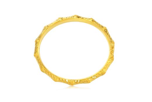 整圈款的黄金手镯最为热门和经典,尽量不要选有暗扣的款式,因为暗扣的材质往往是一些其他硬度较高的金属,不是足金。