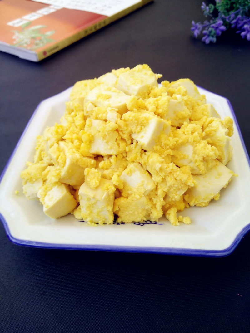 这有一点蛋黄焗土豆泥的意思,蛋黄煸至甘香。切勿过度。宁欠勿过。
