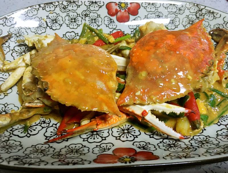 2:清油下锅7分热,梭子蟹下锅爆炒
