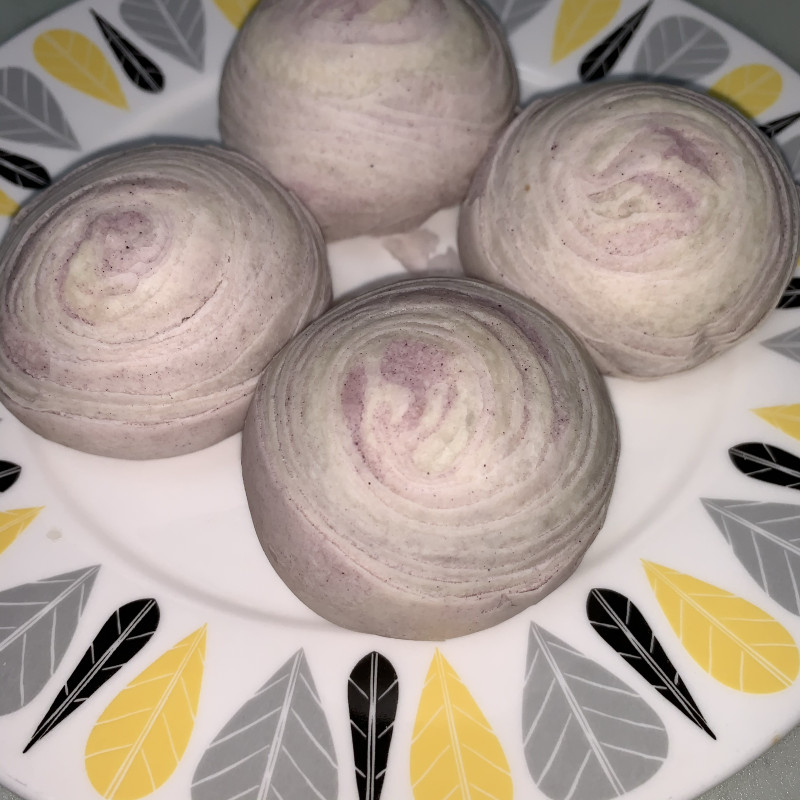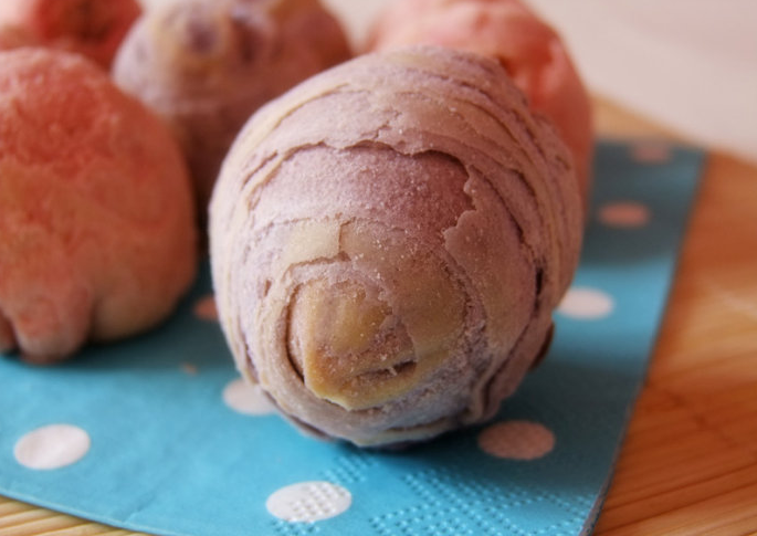 11:切开的面团,在切面可以看到白紫分明的线条。