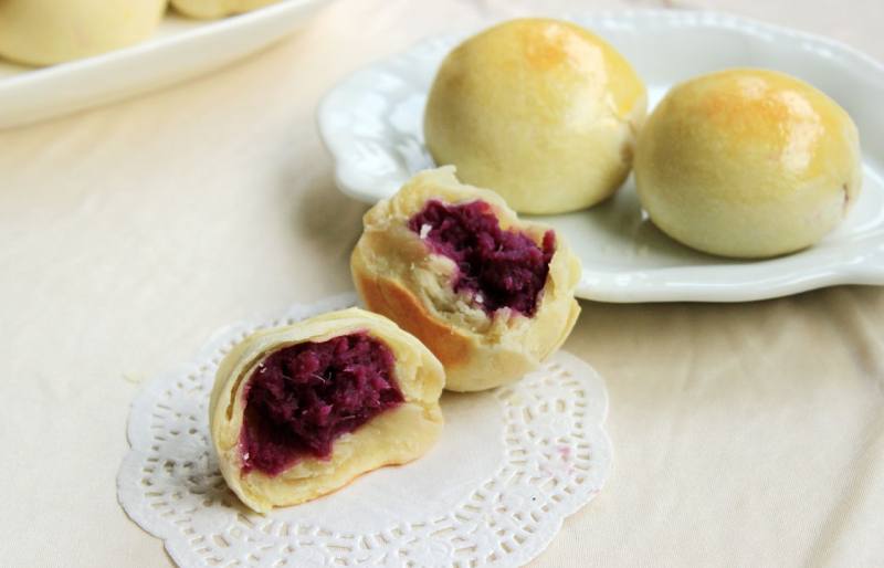 1.油皮一定要发酵好,吃的时候才有一层一层的酥2.紫薯馅炒的时候注意火的大小3.根据自己喜欢做出不同的形状3.馅的多少也可以自己调整