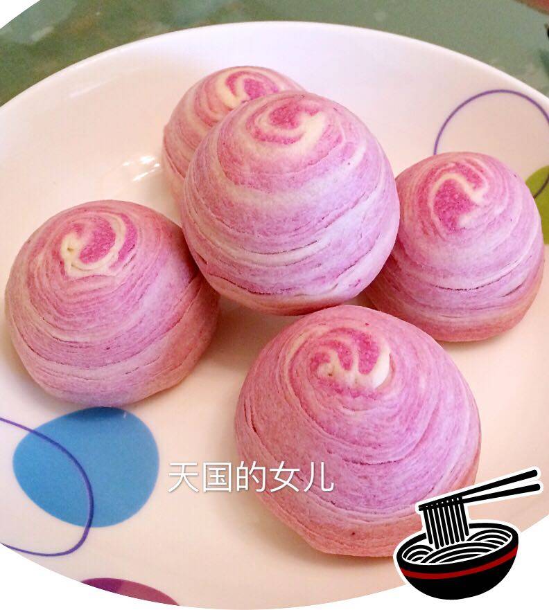 里面的紫薯馅可以自己买紫薯蒸熟弄成泥做成馅料我这里用的是买的紫薯馅自己做的馅料口感会比较好
