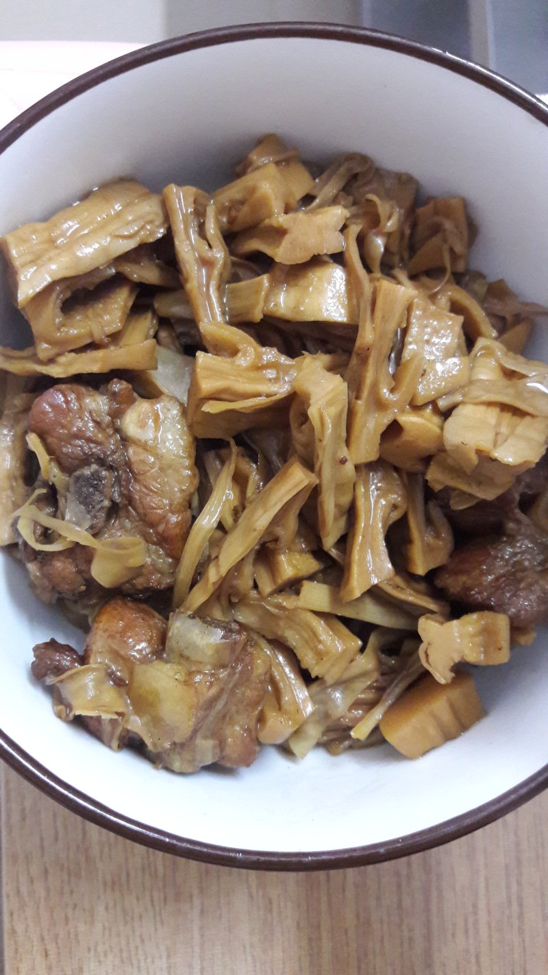 11:烧开后加入笋干,继续烧,小火慢慢炖,期间不时翻一翻,炖到各种材料觉得合适的软烂度。