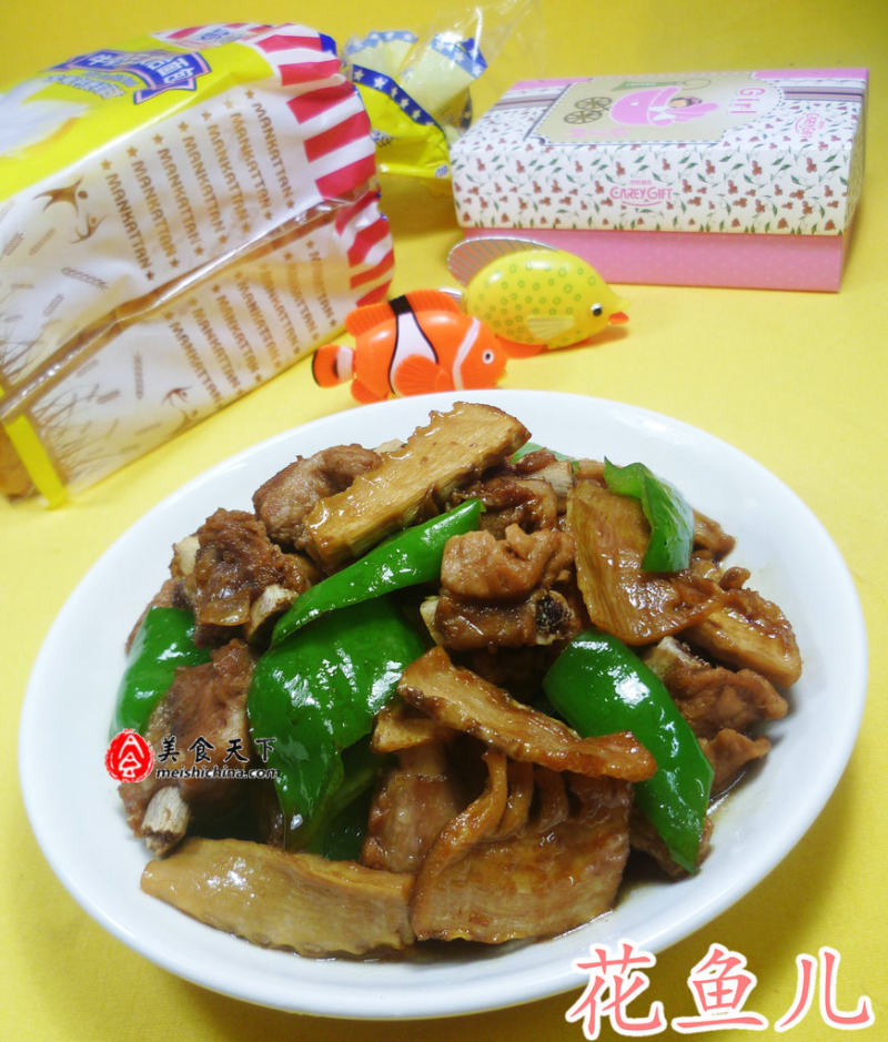 13:最后,煮至汤汁快要收干时,合入切好的青椒翻炒翻炒至青椒断生,即成。