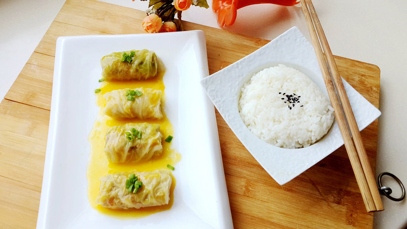 5:取一份馅料放在白菜上