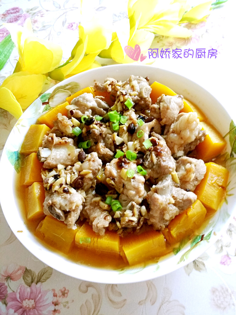 南瓜适量;排骨适量;葱适量;姜适量;蒜末适量;生抽适量;白糖适量;