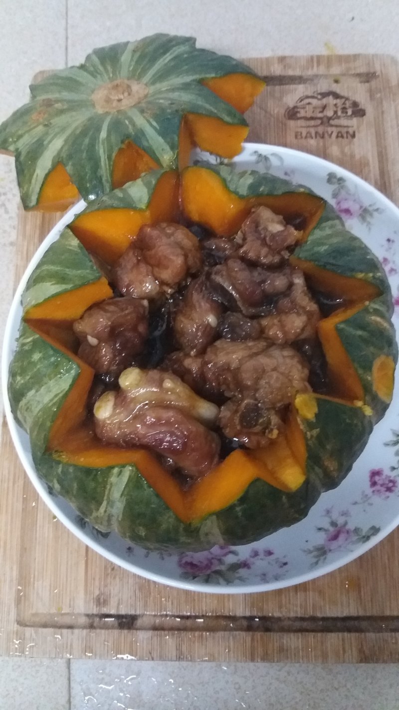 9:烤好的排骨,酱香味儿很浓,南瓜又软又糯,很美的。