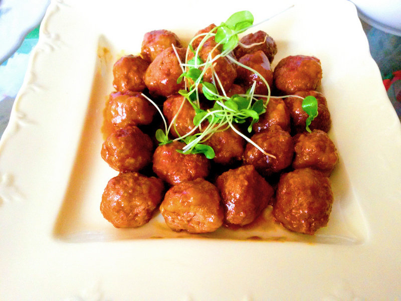 8:放入炸好的丸子,裹匀,大火收干汤汁。