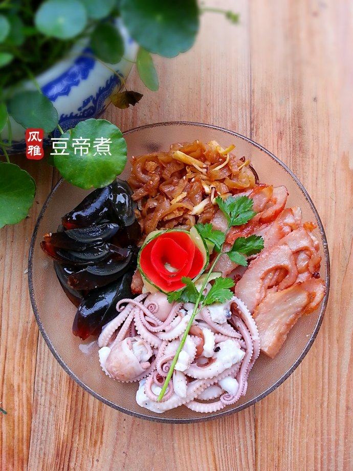 叉烧肉1块;皮蛋2个;章鱼3只;海蜇皮1包;