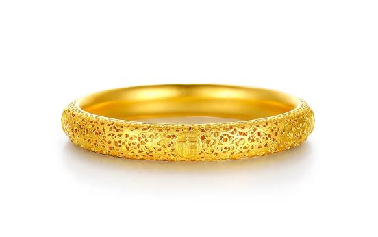 在购买黄金手镯时,切记选购合适尺寸的圈口。过大的圈口佩戴不牢固,可能会导致手镯掉落;过小的圈口佩戴不舒适,时间一长可能会勒出印痕。因此,要尽量选购合适的尺寸。