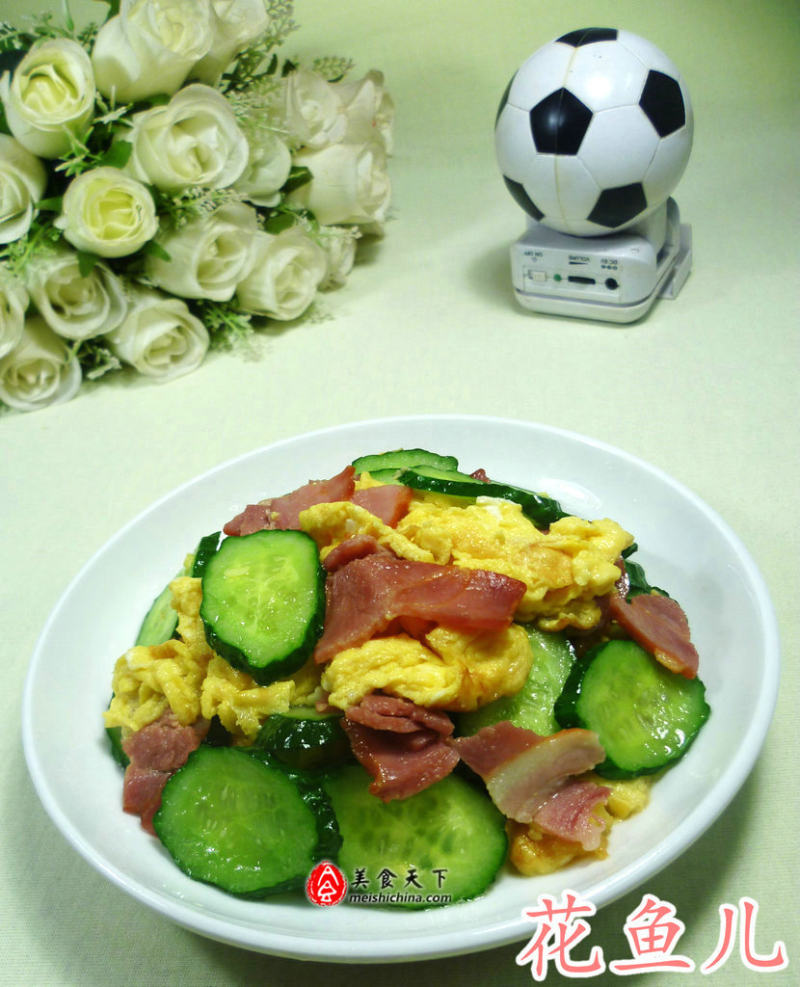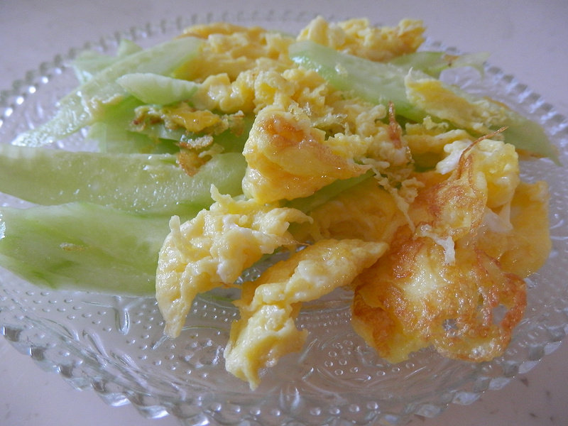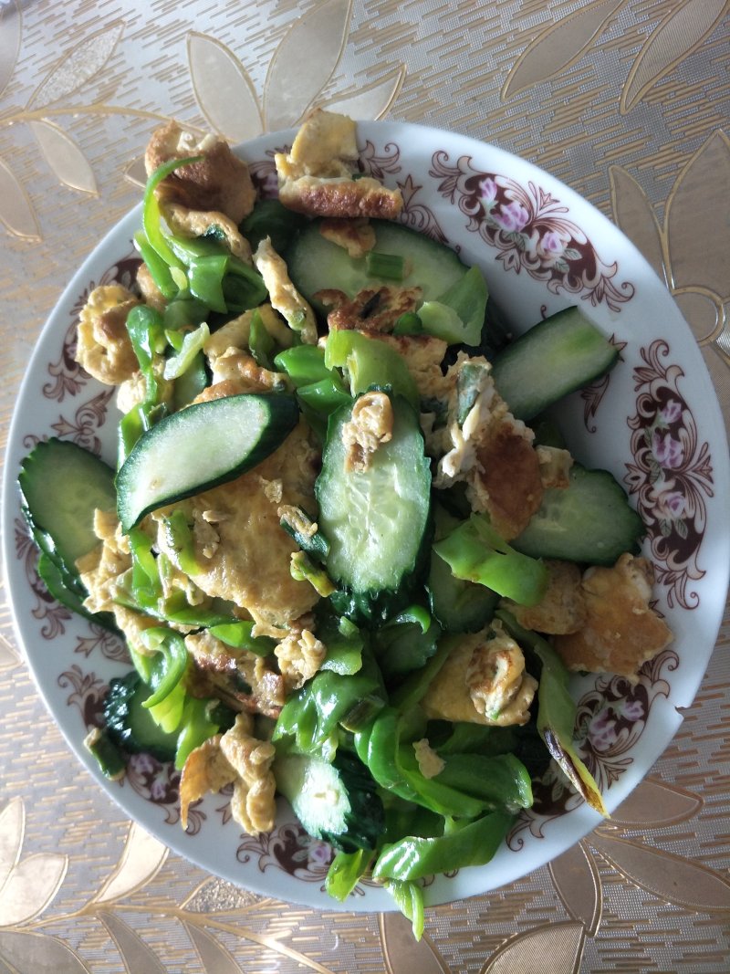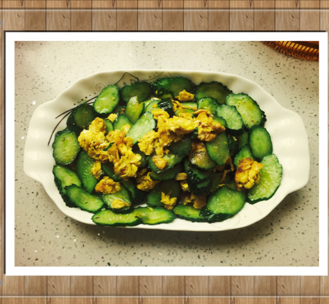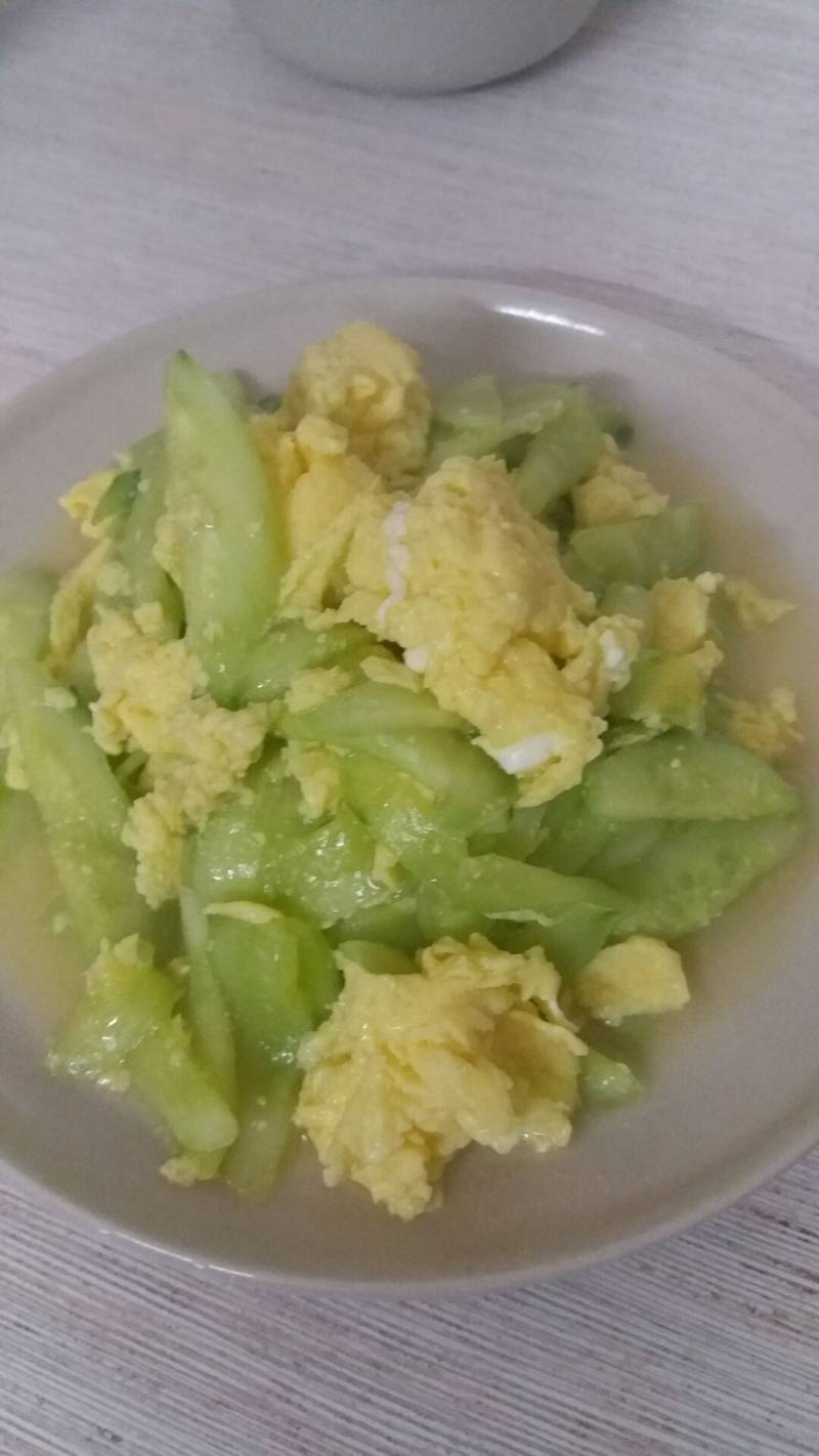 5:鸡蛋成块后,加入青瓜,青瓜变软,加少许盐,就好了