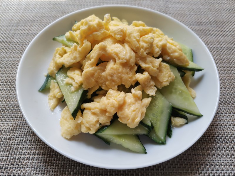 此菜是清淡口味的,黄瓜脆脆的,鸡蛋香香的,口味浓的可以加一点辣子。