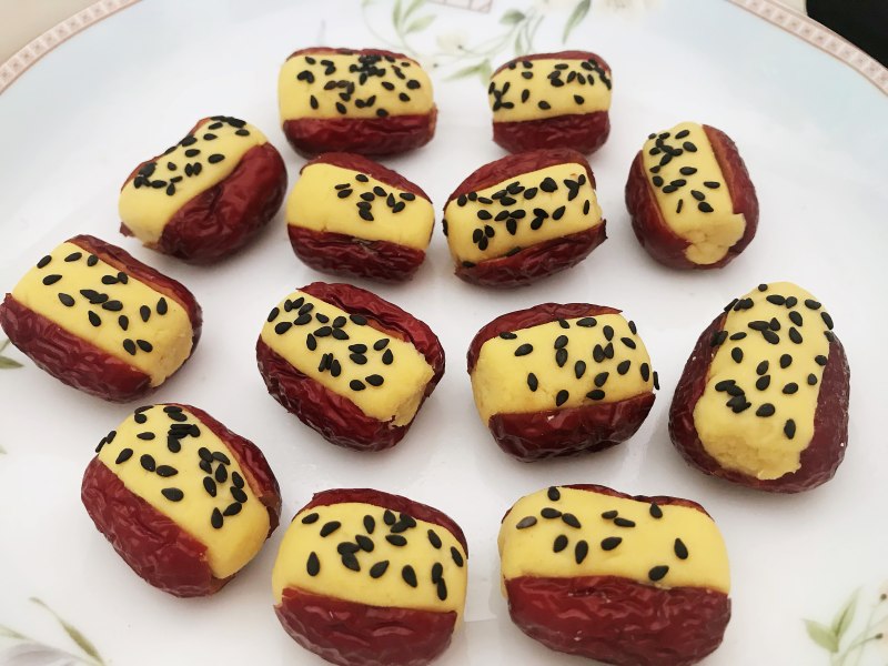 8:将红薯条塞入红枣中,2边的边角整理美观。