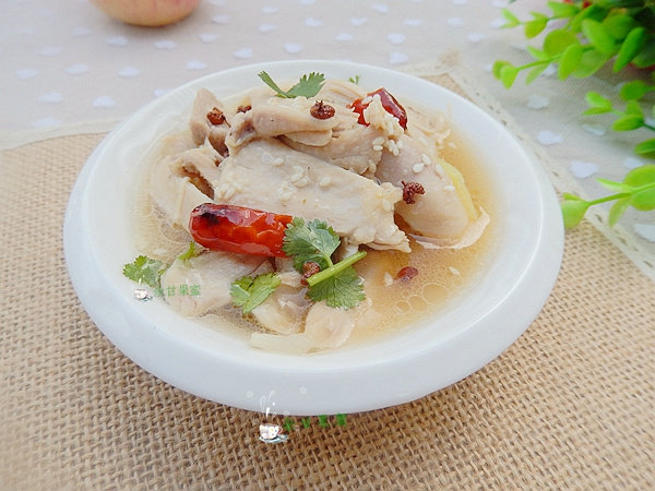 鸡肉泡冰水是为了鸡皮脆口,第一次煮鸡肉时,不要煮全熟,八分熟就可以,后面还要泡浸会把鸡肉泡至全熟的。
