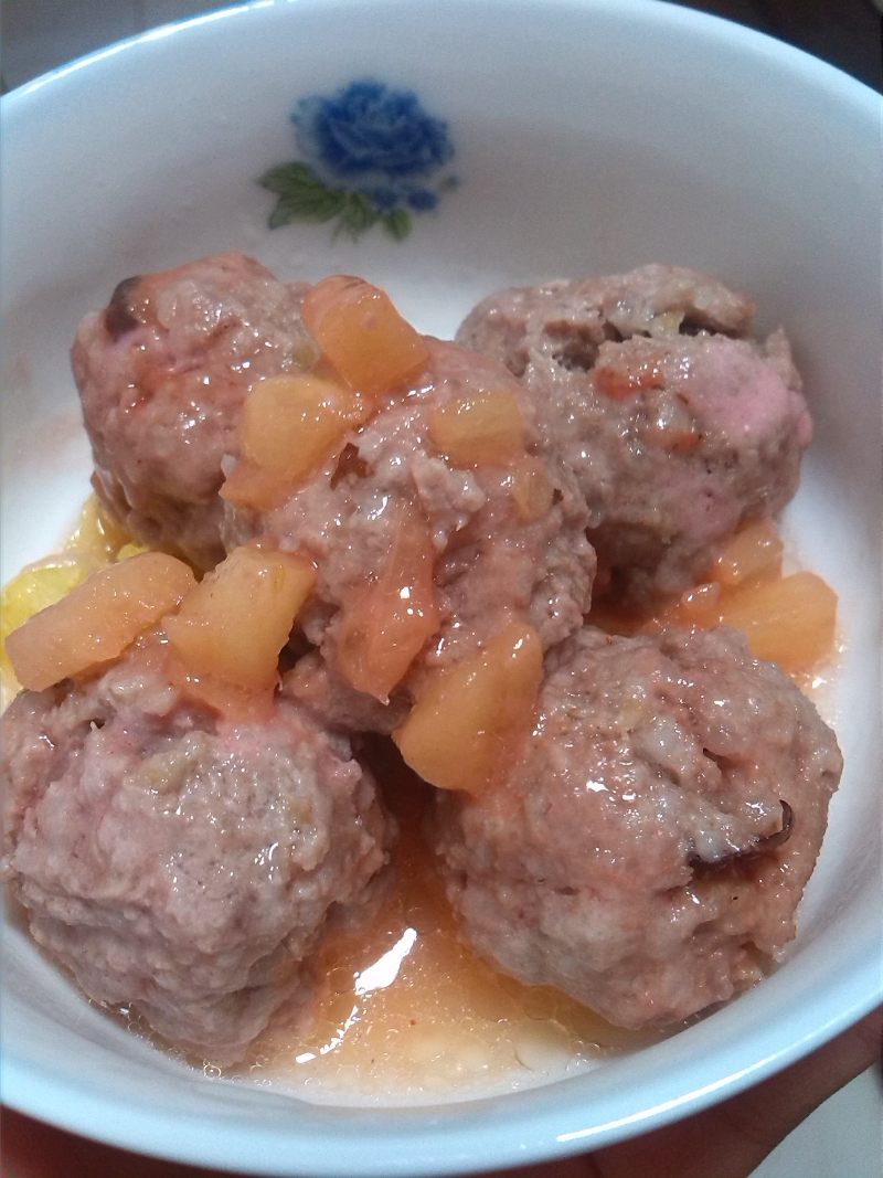 9:将炒好的汁浇在蒸好的圆子上。完工!
