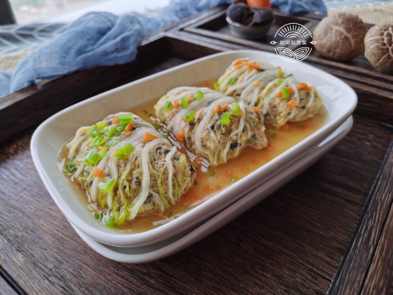 1、大白菜叶子要选择大小均匀且完整的,这样做出来的肉卷造型完整且个头均匀。2、白菜叶子焯水不要久,打软即可,因为咱们后面还要蒸。焯水后的白菜叶子过凉是为了防止余温令其过于熟烂,口感清脆美味。3、切下来的白菜帮不要浪费,剁碎入馅味道很鲜美。4、肉馅调味之后需要加入葱姜水,既可去除肉臊味,还可嫩滑肉质,加入葱姜水要摔打上劲令肉馅吃进水分不跑水。5、菜卷在蒸的过程中会出水,汤汁有颜色,故而在调碗汁的时候不要再上色,依据咖啡多次操作的经验来看,芡汁清亮一些更令人赏心悦目有食欲。