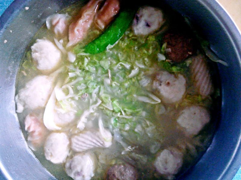 1:将鱼丸放入煮开的鸡汤,煮熟